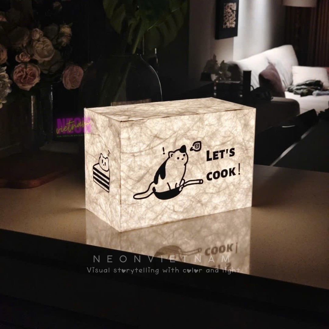 • Cloud-Themed Charm: Featuring a beautiful, textured material that mimics clouds or traditional paper, these boxes create a super soft, ambient glow. Perfect for home kitchens (“LET’S COOK!“) or creating a cozy, welcoming cafe atmosphere.